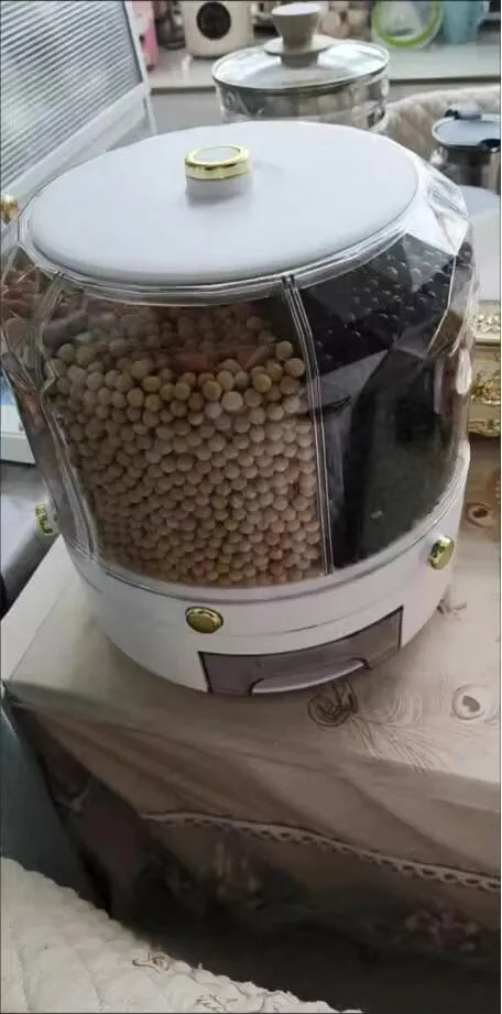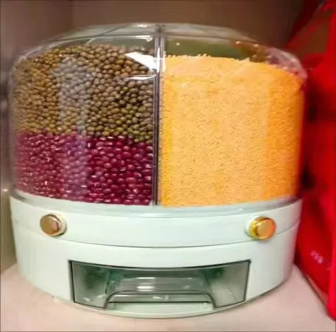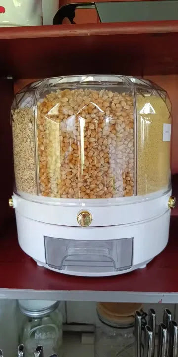 Spune adio haosului din bucătărie. Cu distribuitorul nostru inovator de alimente rotativ, păstrarea cămării ordonate nu a fost niciodată mai ușoară. Proiectat pentru a oferi depozitare etanșă, blochează umiditatea pentru a menține prospețimea cerealelor, gustărilor și chiar a mâncării pentru animale. O funcție unică de rotație la 360° permite accesul ușor la orice compartiment. Nu mai trebuie să te chinui cu pungi sau cutii – găsește ce ai nevoie, când ai nevoie. Dispunerea în șase compartimente îți permite să depozitezi diverse alimente cu ușurință, făcându-l o soluție versatilă pentru nevoile tale de depozitare în bucătărie. Bucură-te de confort și prospețime astăzi.